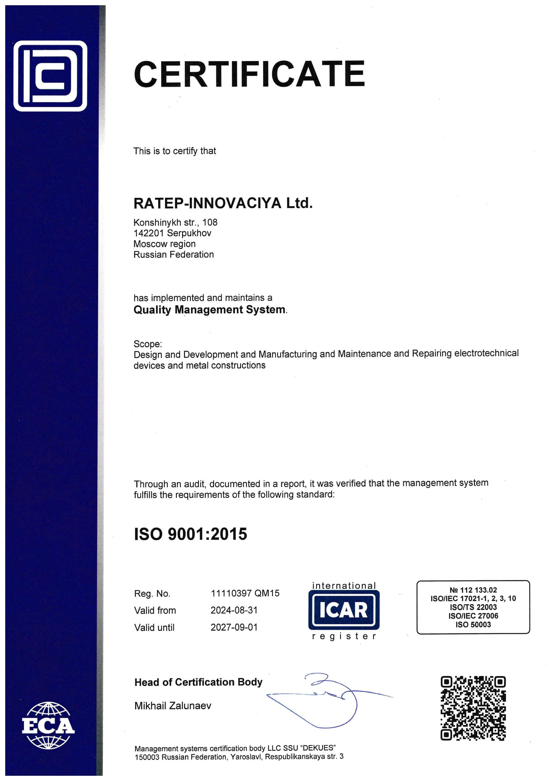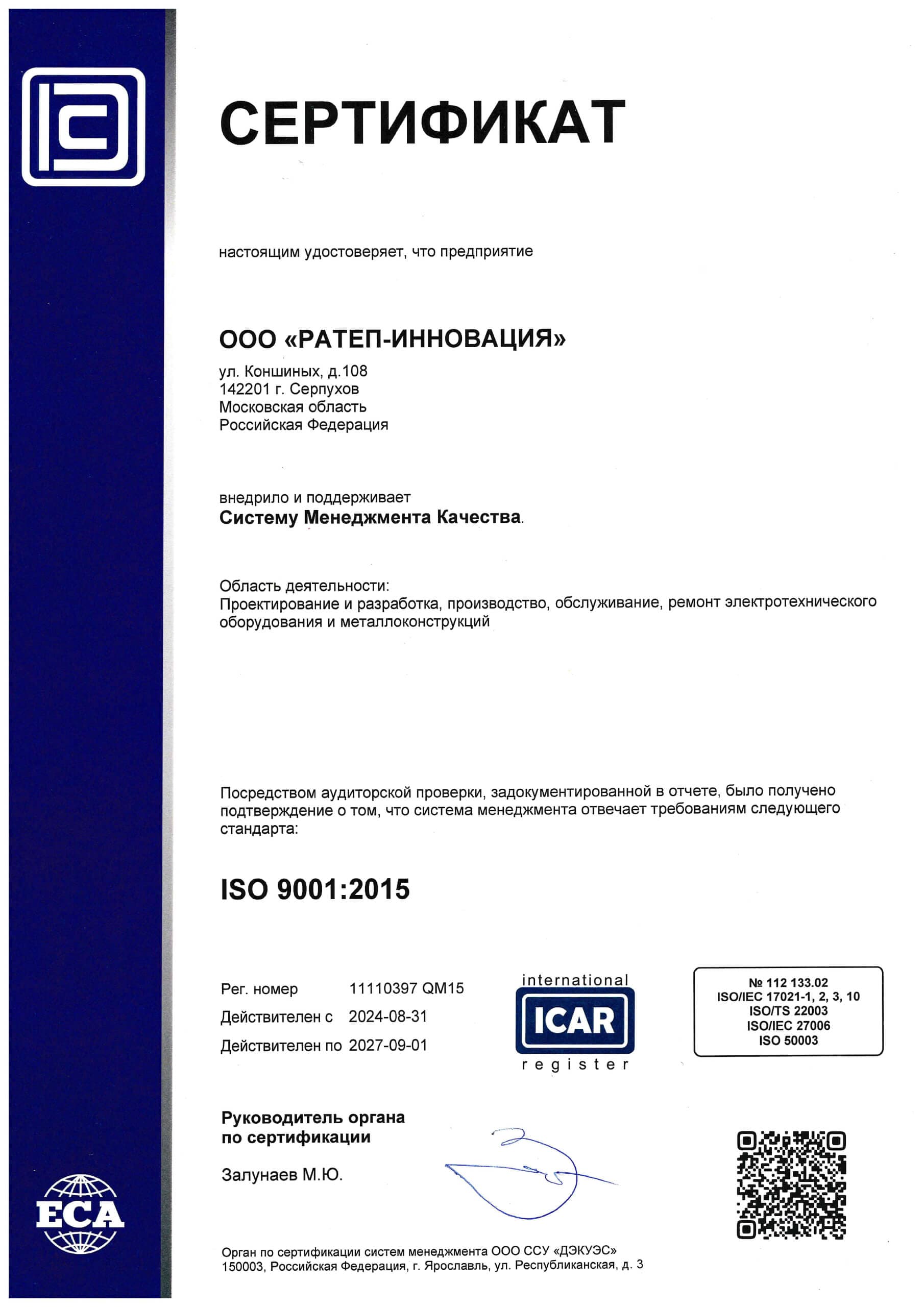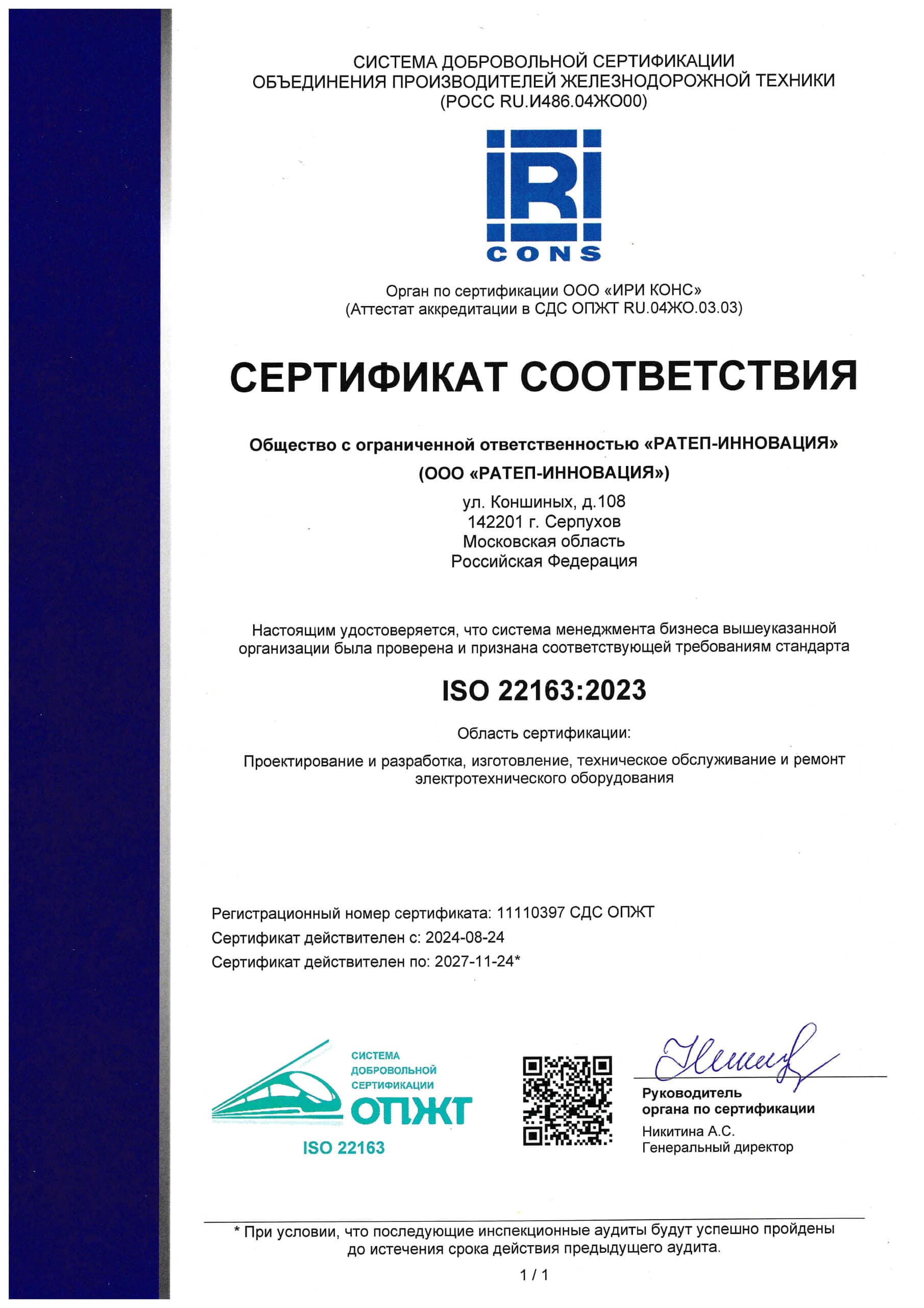 Наше предприятие сертифицировано в соответствии с требованиями ГОСТ ISO 9001:2015 и ISO 22163:2023 — ключевых стандартов в сфере управления качеством для общего и железнодорожного секторов.