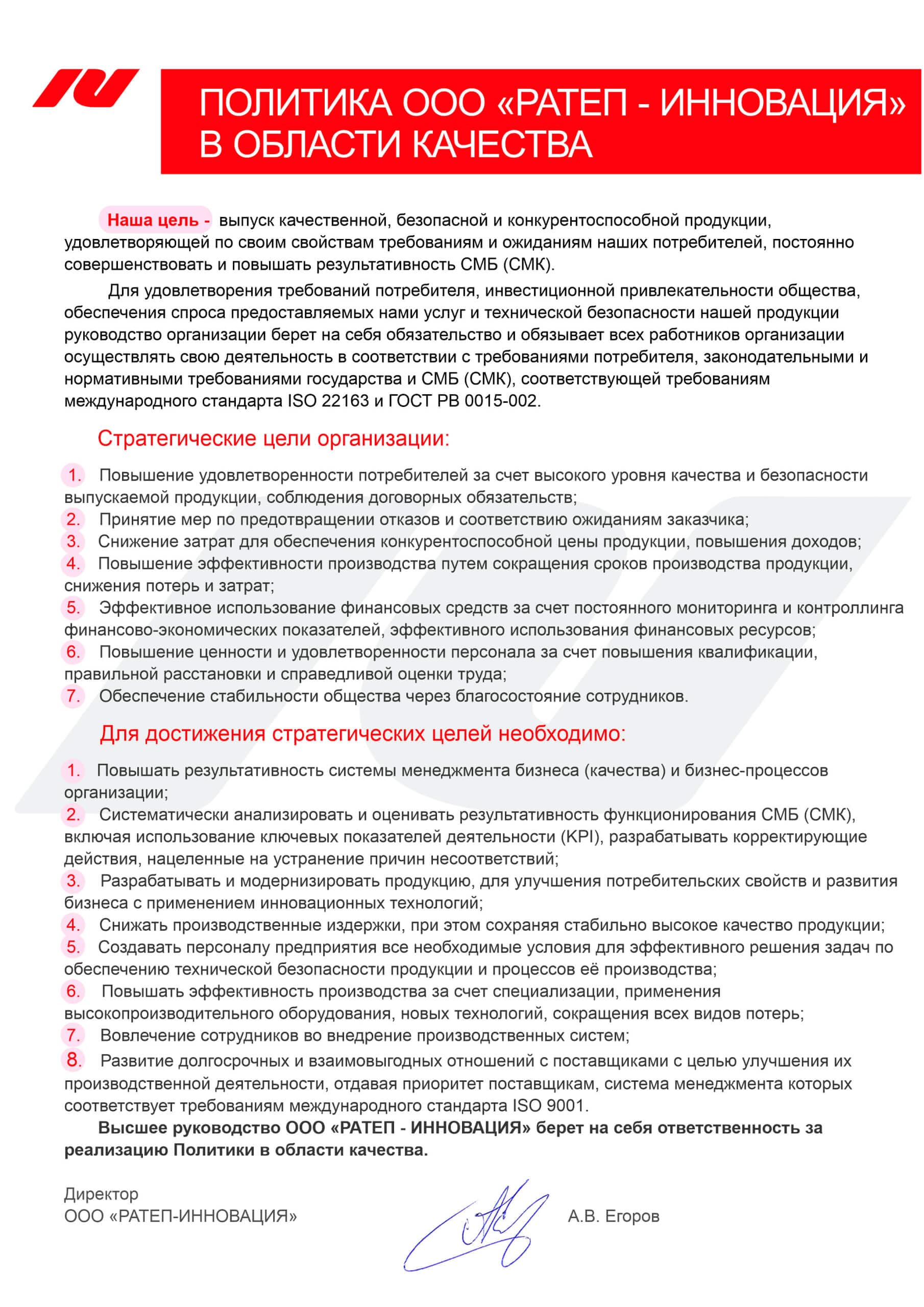 Система менеджмента качества — это не просто документы, а инструмент для достижения амбициозных целей. Благодаря интеграции стандартов ISO 9001 и ISO 22163, мы создаем решения, которые задают тренды в железнодорожной отрасли и за её пределами. Наша цель — не соответствовать ожиданиям, а превосходить их, делая каждый процесс шагом к идеалу.